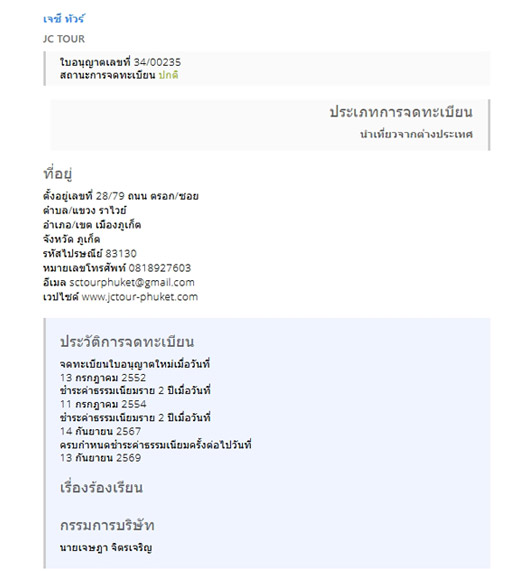 - เจซีทัวร์ จดทะเบียน การพาณิชย์ อิเล็กโทรนิกส์ ถูกต้อง หมายเลข 0835557015003